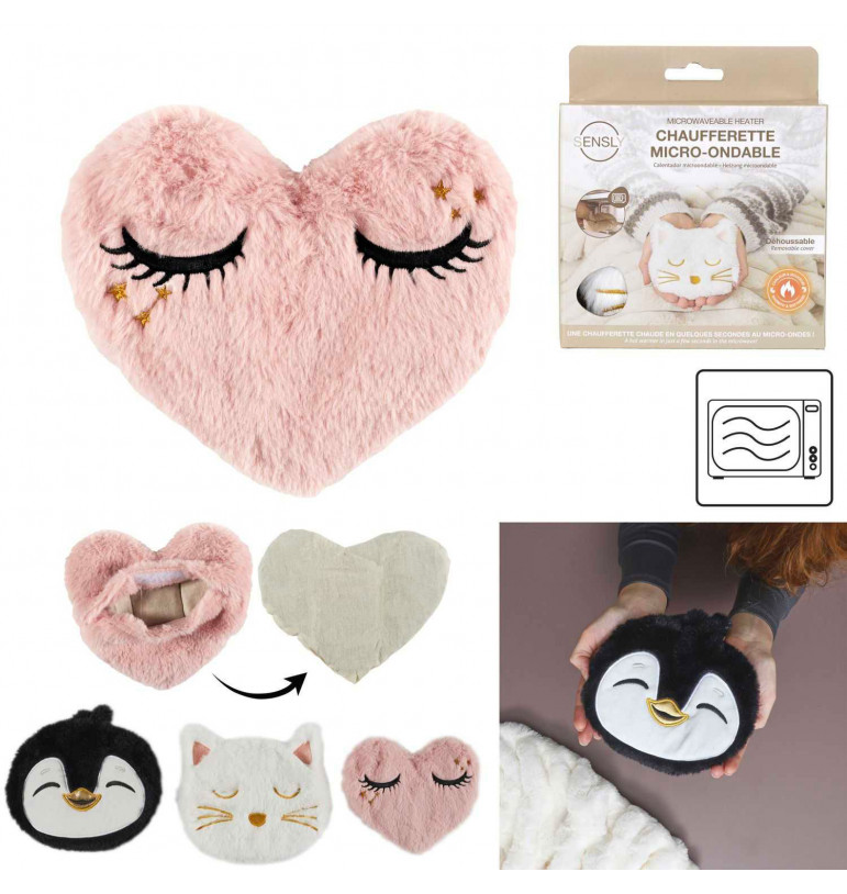 C'est laccessoire confort incontournable! Avec son design craquant avec des formes de cur, chat ou pingouin, pour un style tendre et apaisant. Cette chaufferette toute douce diffuse une chaleur douce et réconfortante après un simple passage au micro-ondes.