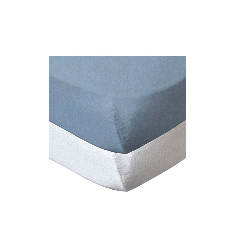 Lot de 2 draps-housse en coton 60x120 cm - Blanc/Bleu