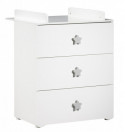 Commode 3 tiroirs boutons "coeur" rose tendre avec dispositif à langer (amovible) inclus